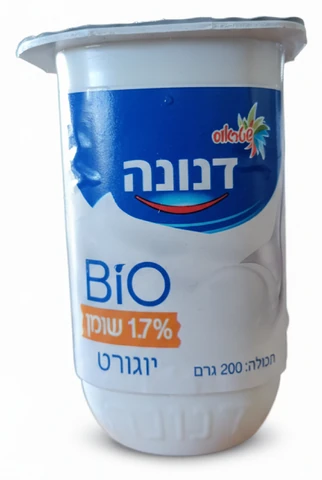 יוגורט ביו טבעי דנונה, אחוז שומן 1.5%-1.7%. כל יחידה במשקל 200 גרם. האריזה מכילה 2 יחידות, סה"כ 400 גרם. מיוצר על ידי שטראוס בריאות בע"מ.