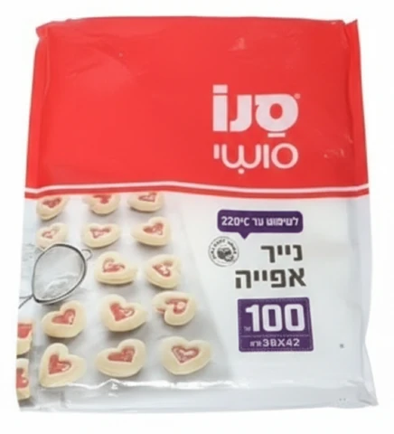 נייר אפייה איכותי מבית סנו סושי, 100 יחידות. מתאים לשימוש בתנור.