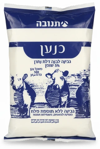 Canaan white cheese 5% fat, salt-free, weighing 500g. Packaged in five units.