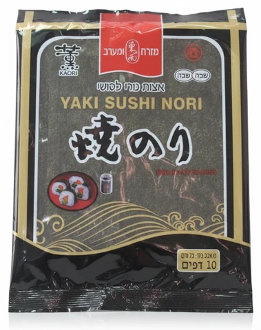 אצות נורי איכותיות המתאימות להכנת סושי. החבילה מכילה 10 דפים במשקל כולל של 25 גרם.