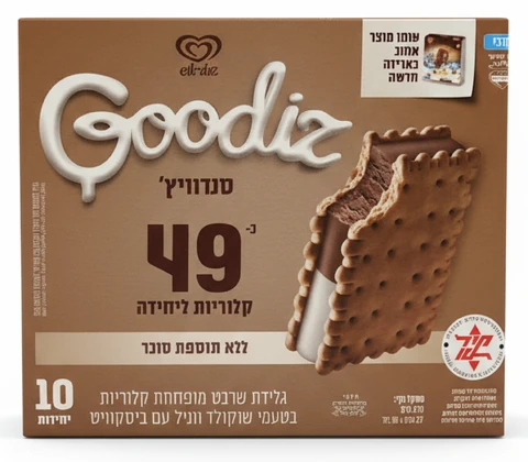 מאגדת 10 יחידות גודיז סנדוויץ' שוקולד וניל לייט