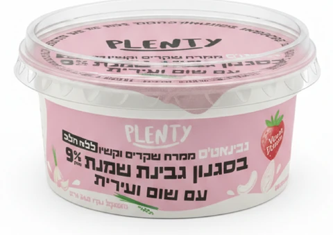 ממרח שקדים וקשיו בטעם שום ועירית 9%. משקל 240 גרם.