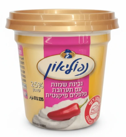 גבינת שמנת נפוליאון עם פלפלים פיקנטיים 25% שומן, 225 גרם. מיוצר בישראל.