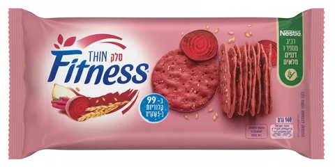 קרקר דק פיטנס סלק, 14 יחידות, 140 גרם. קרקרים דקים ופריכים בטעם סלק.